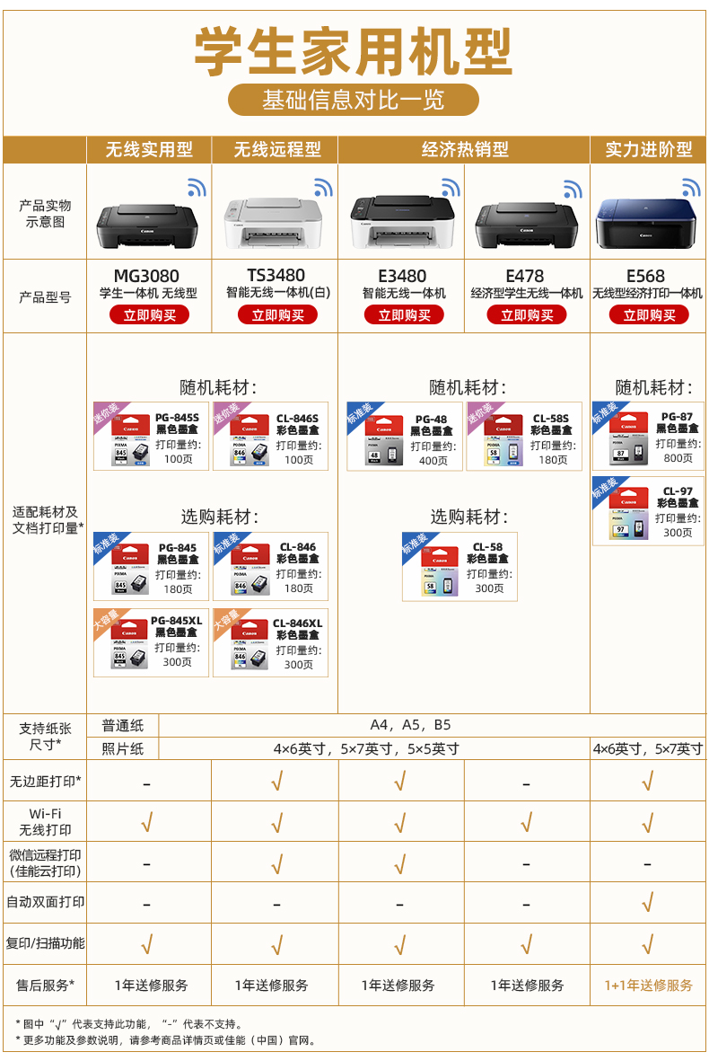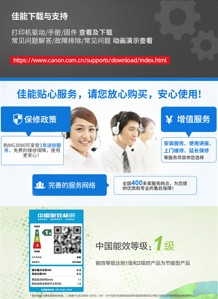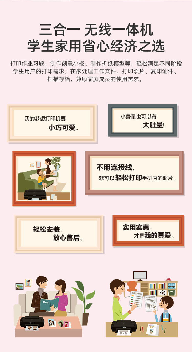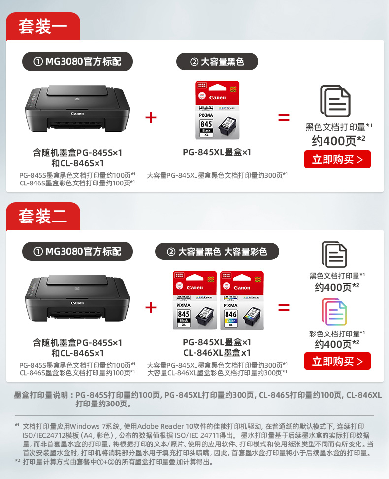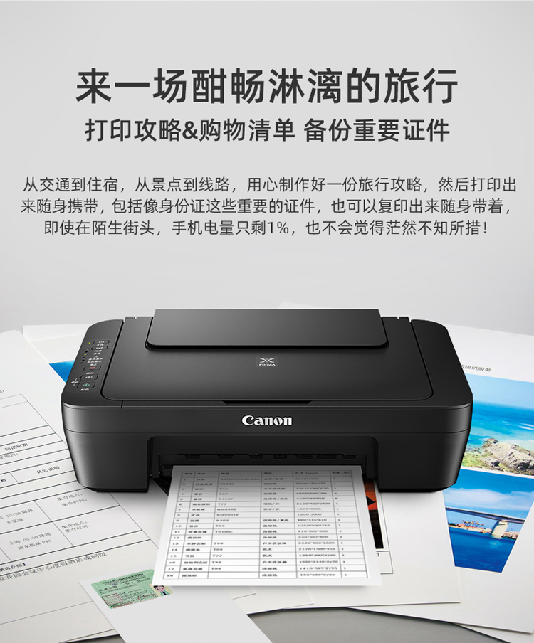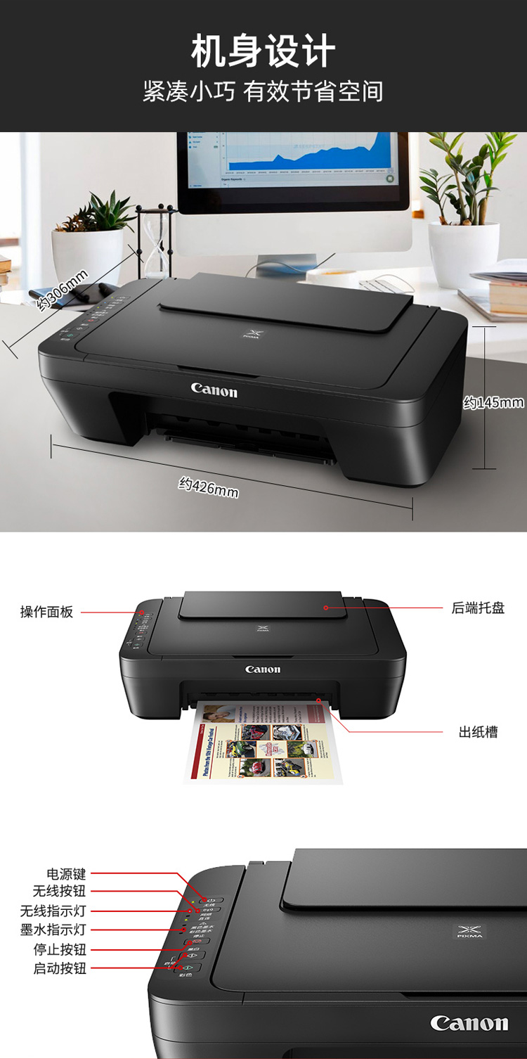 佳能(Canon)MG3080无线家用彩色喷墨多功能一体机(打印/复印/扫描 学生打印/家庭打印/照片打印 WiFi)