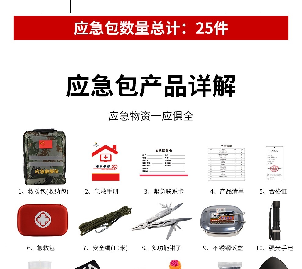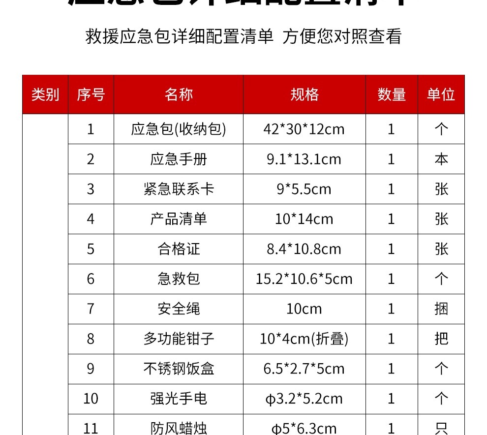 援邦 应急救援包 家庭应急自救地震逃生包救援套装 末日生存套装 人防战备求生生存逃生背包 专享版