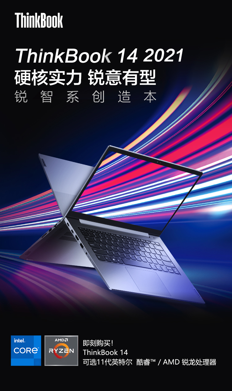 联想ThinkBook 14 2021款 14英寸轻薄笔记本电脑 【08CD】 11代酷睿i7-1165G7 独显 16G 512G 100%sRGB 高色域 标配