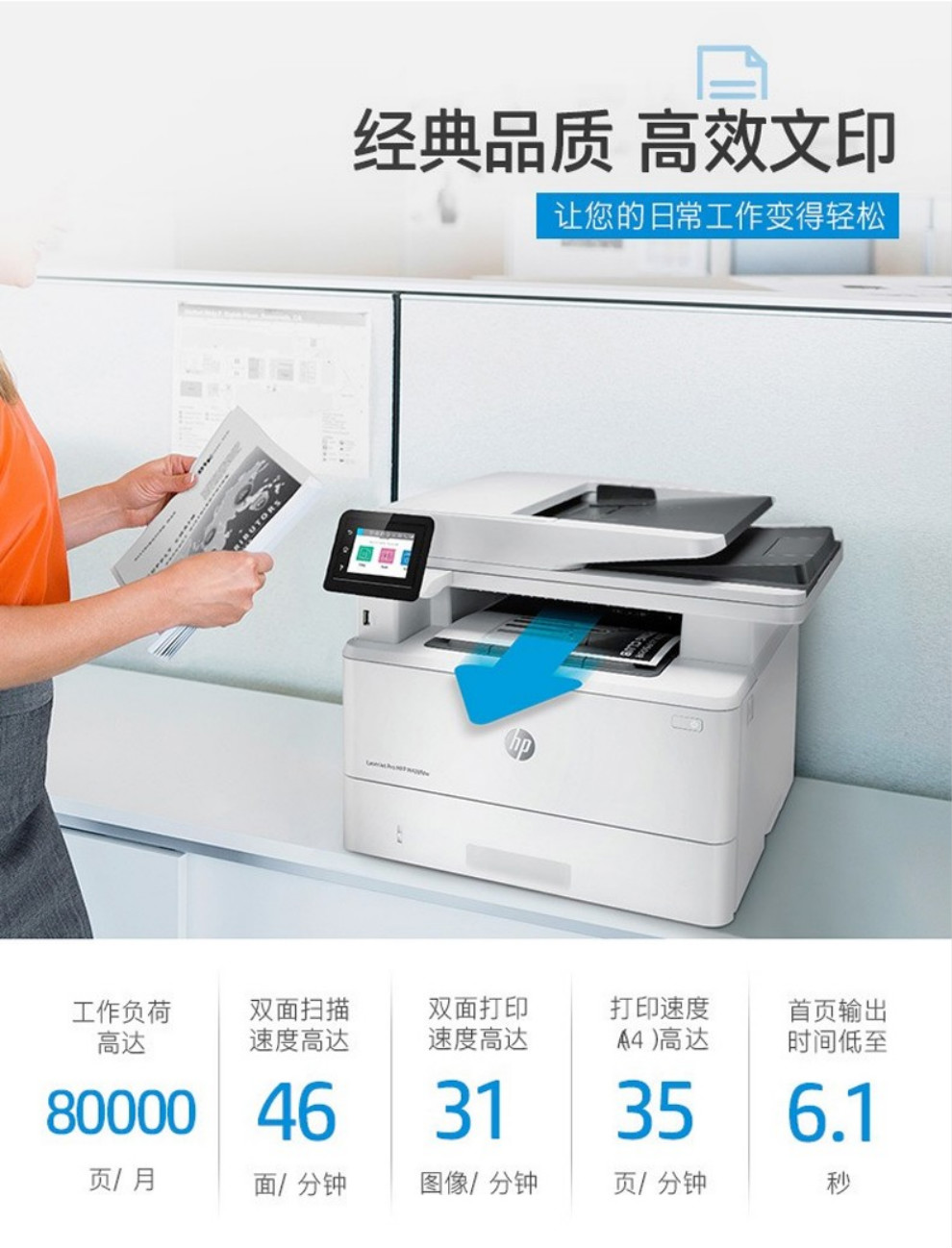 惠普(HP)黑白激光一体机M429dw/fdw 329dw打印机多功能自动双面复印扫描无线 M429fdw【四合一+自动双面打印+无线连接】 官方标配