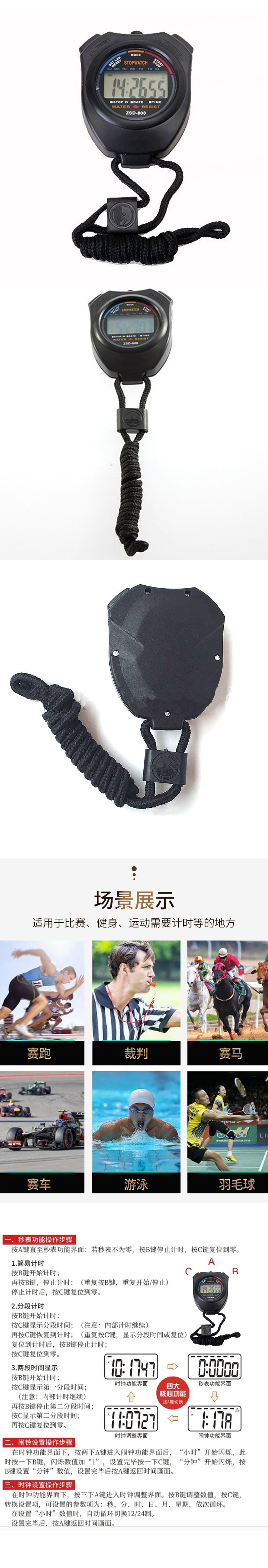 先锋连 运动裁判秒表计时器体育田径跑步运动健身多功能记忆游泳防水比赛计时器电子秒表 单排2道