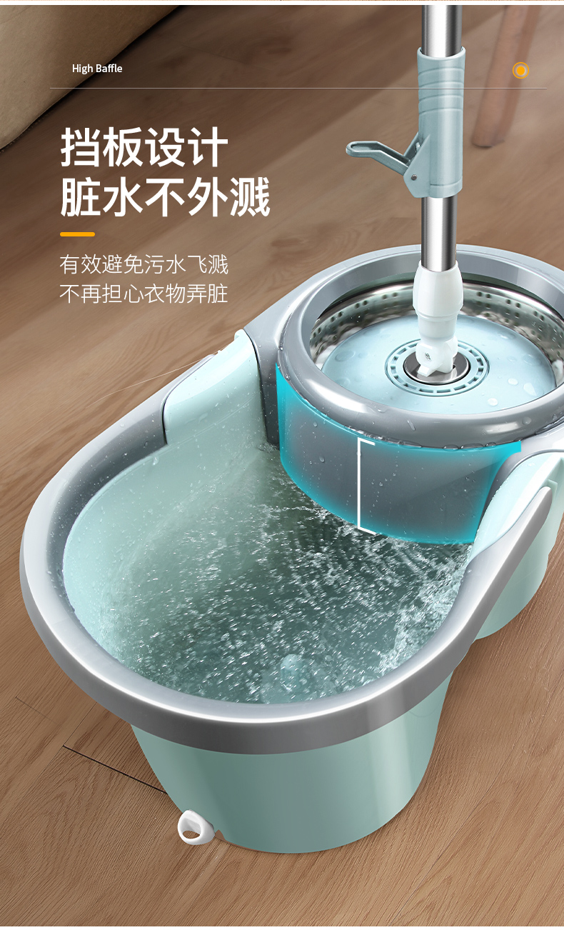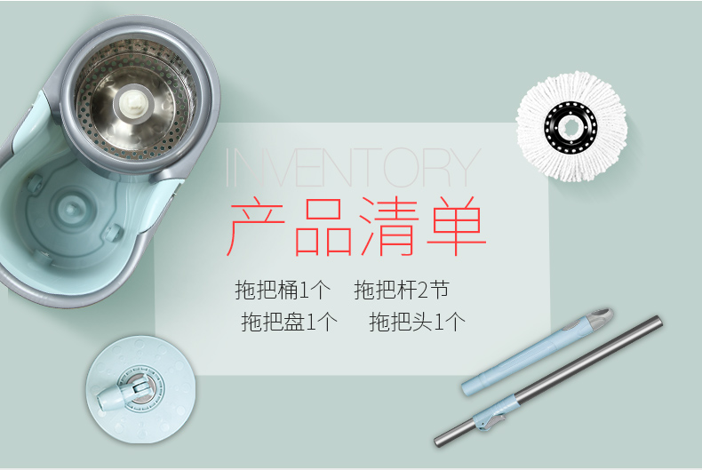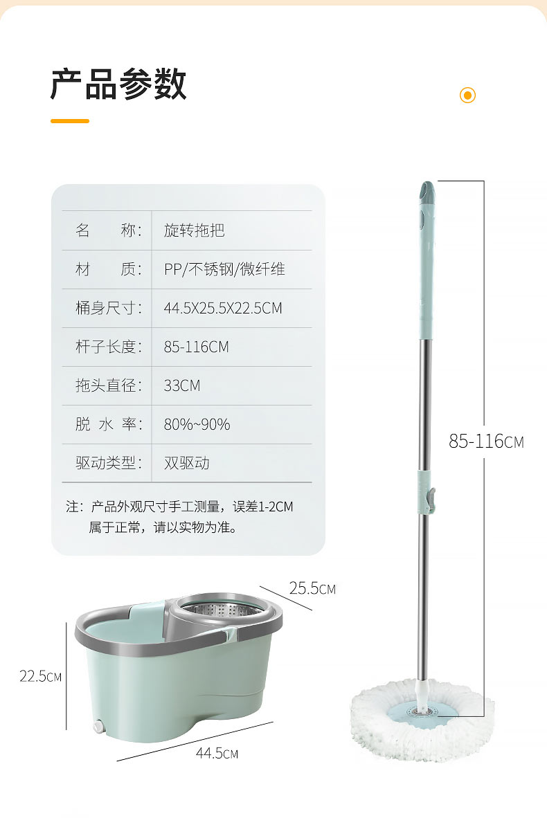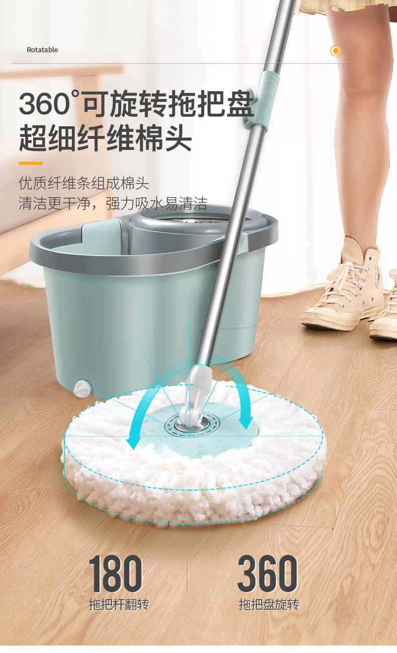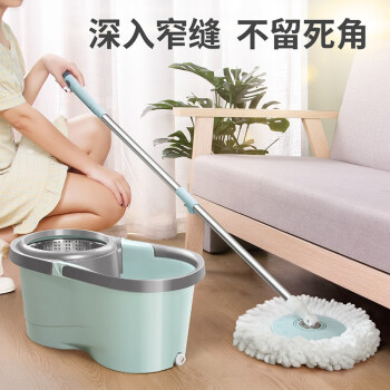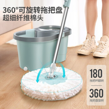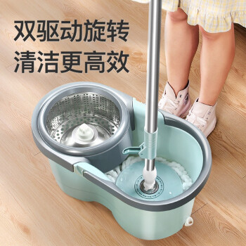 百家好世 AT双驱旋转拖把免手洗微纤维吸水拖布家用按压拖地桶干湿两用甩干地拖墩布桶 2头