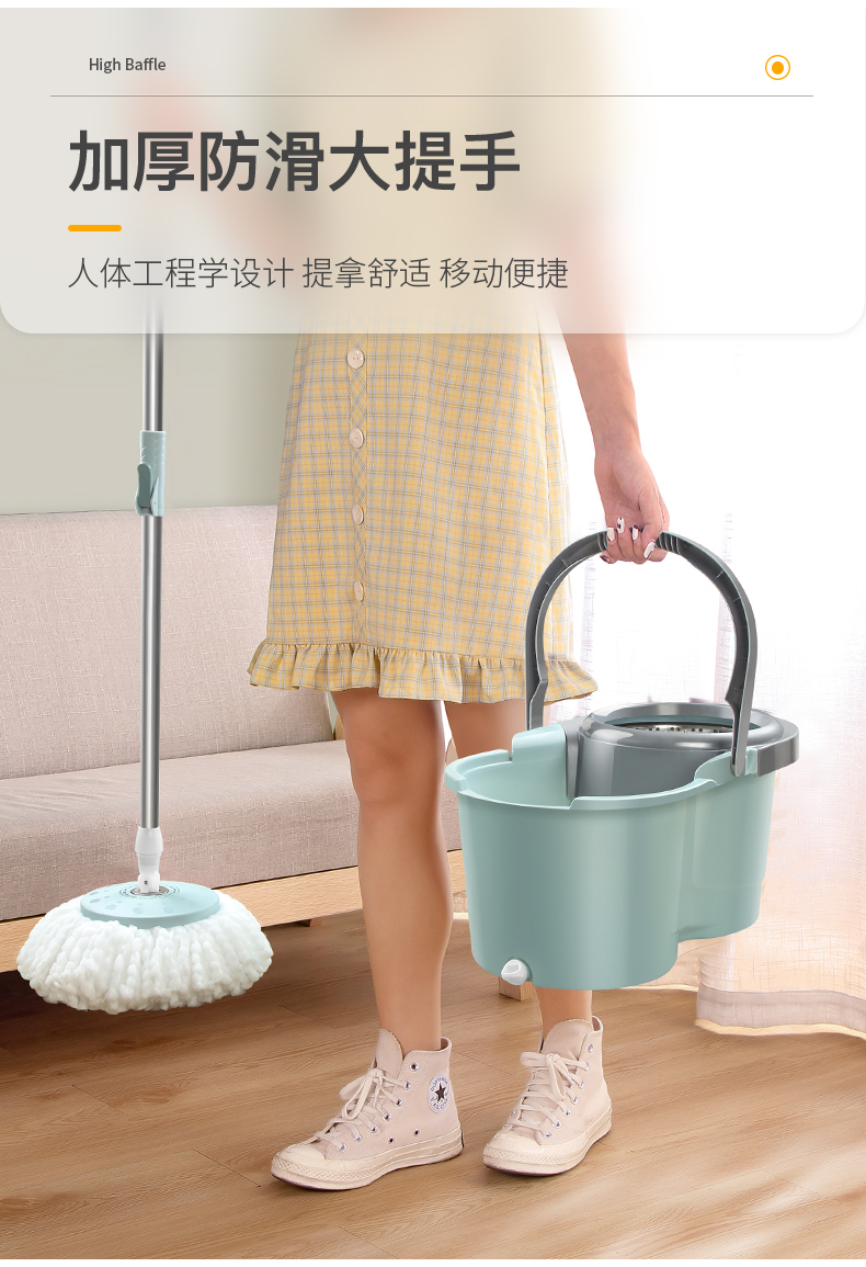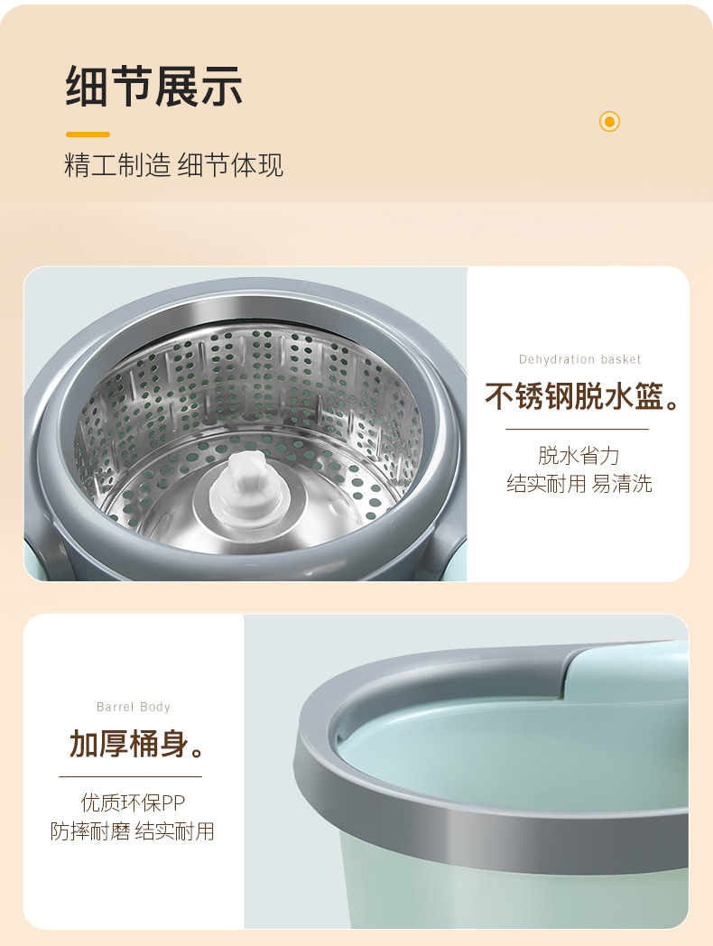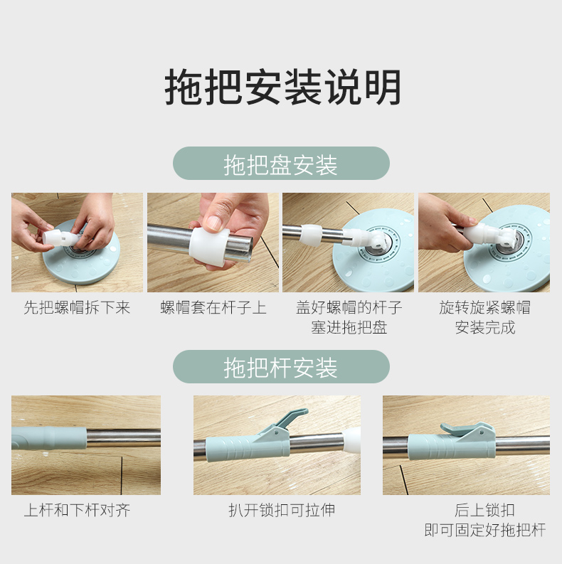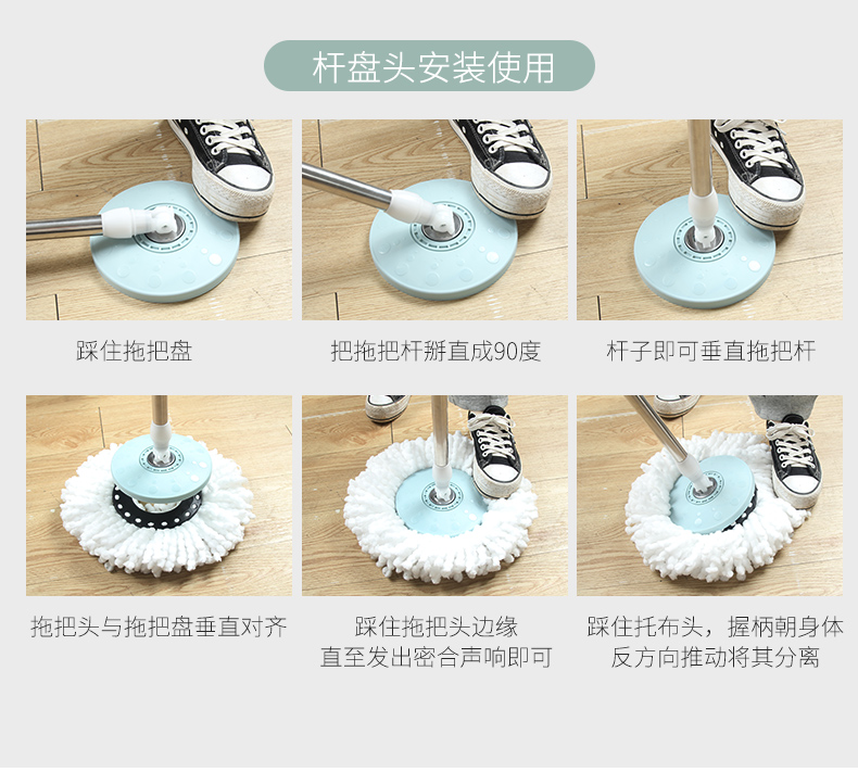 百家好世 AT双驱旋转拖把免手洗微纤维吸水拖布家用按压拖地桶干湿两用甩干地拖墩布桶 2头