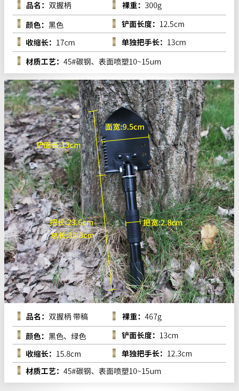 加加林 工兵铲多功能铁锹折叠铲子车载兵工铲 户外野营锄头镐子