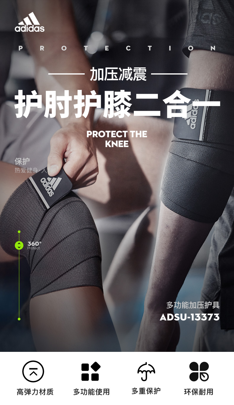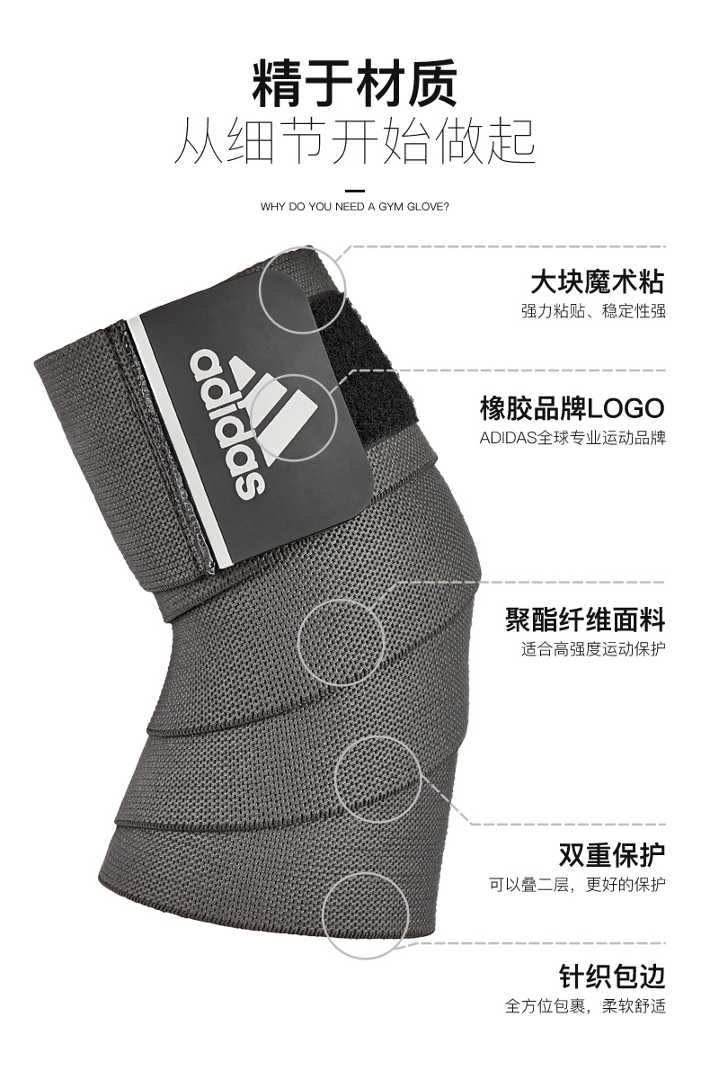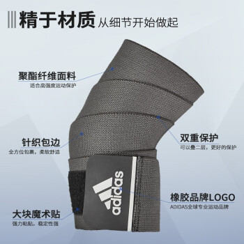 阿迪达斯(adidas)健身护膝护肘男女深蹲训练跑步运动绷带护膝 深灰色ADSU-13373 单只装