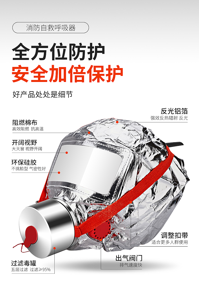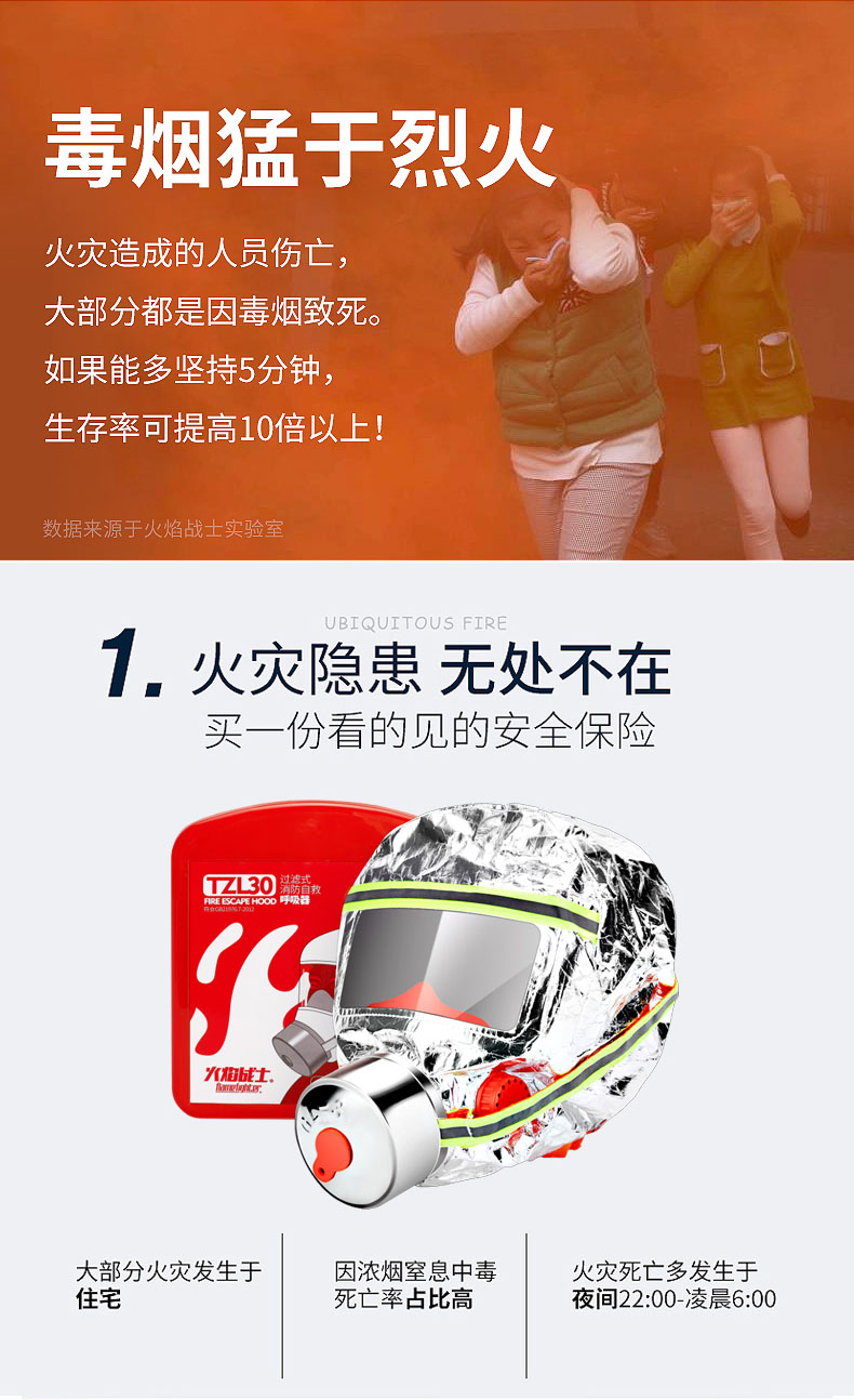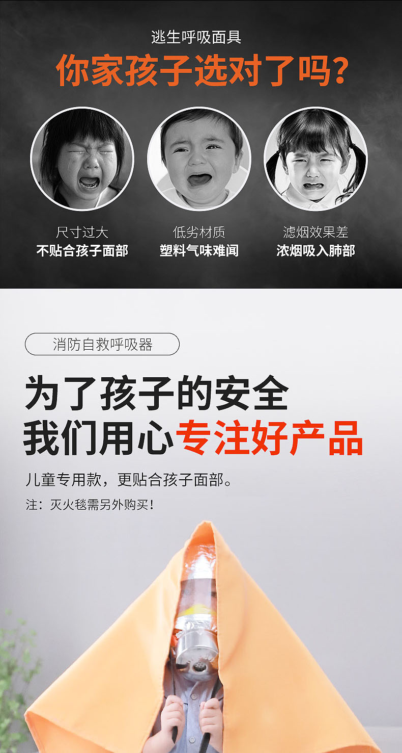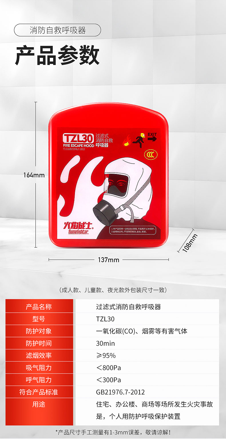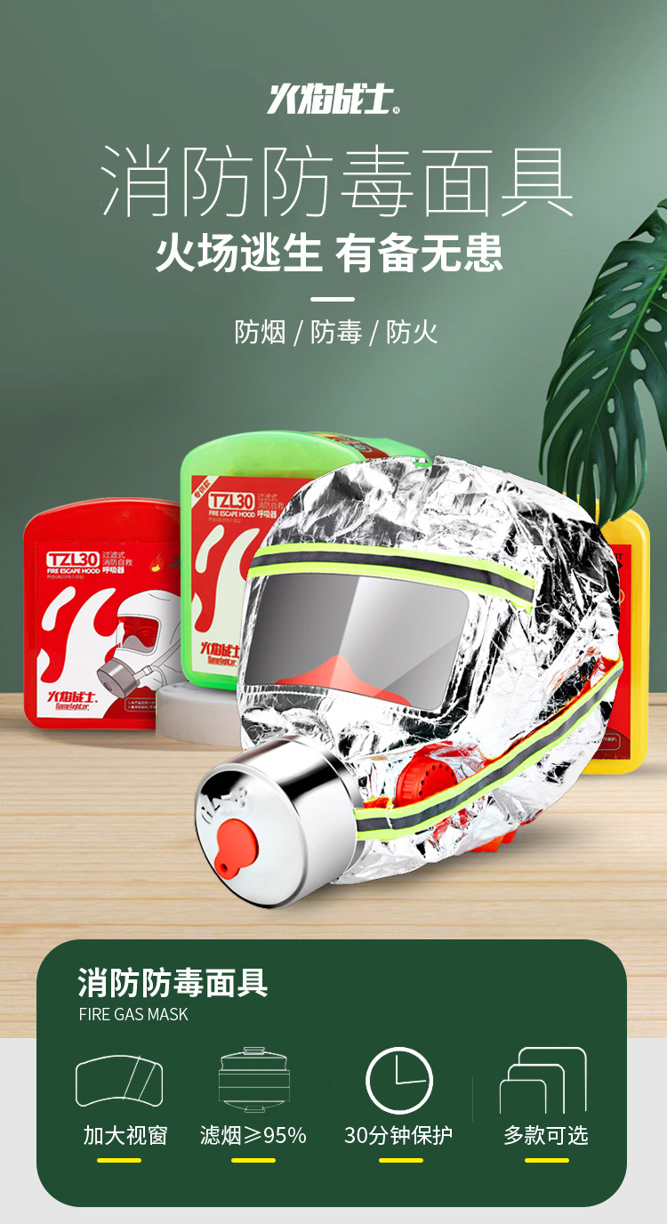 火焰战士 消防面具防毒面具硅胶防烟面罩灭火器配套用过滤式自救呼吸器家用高层逃生面罩 TZL30