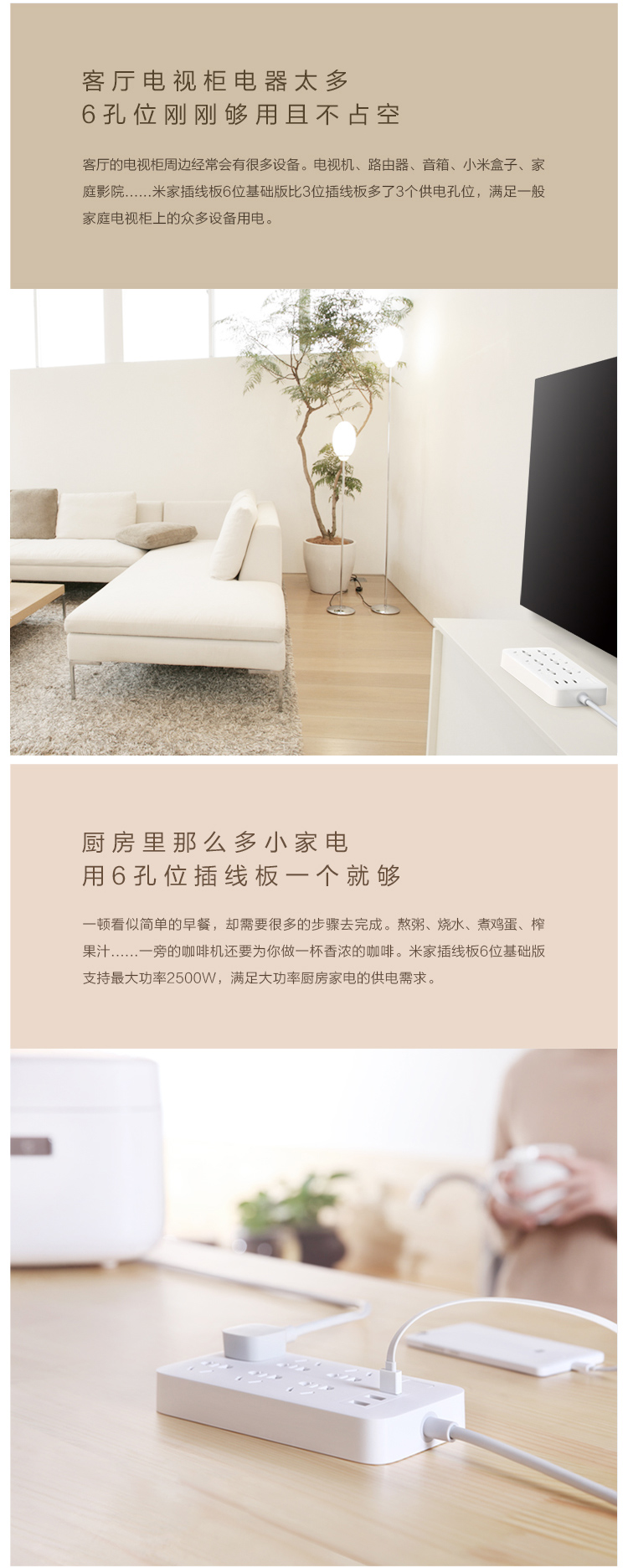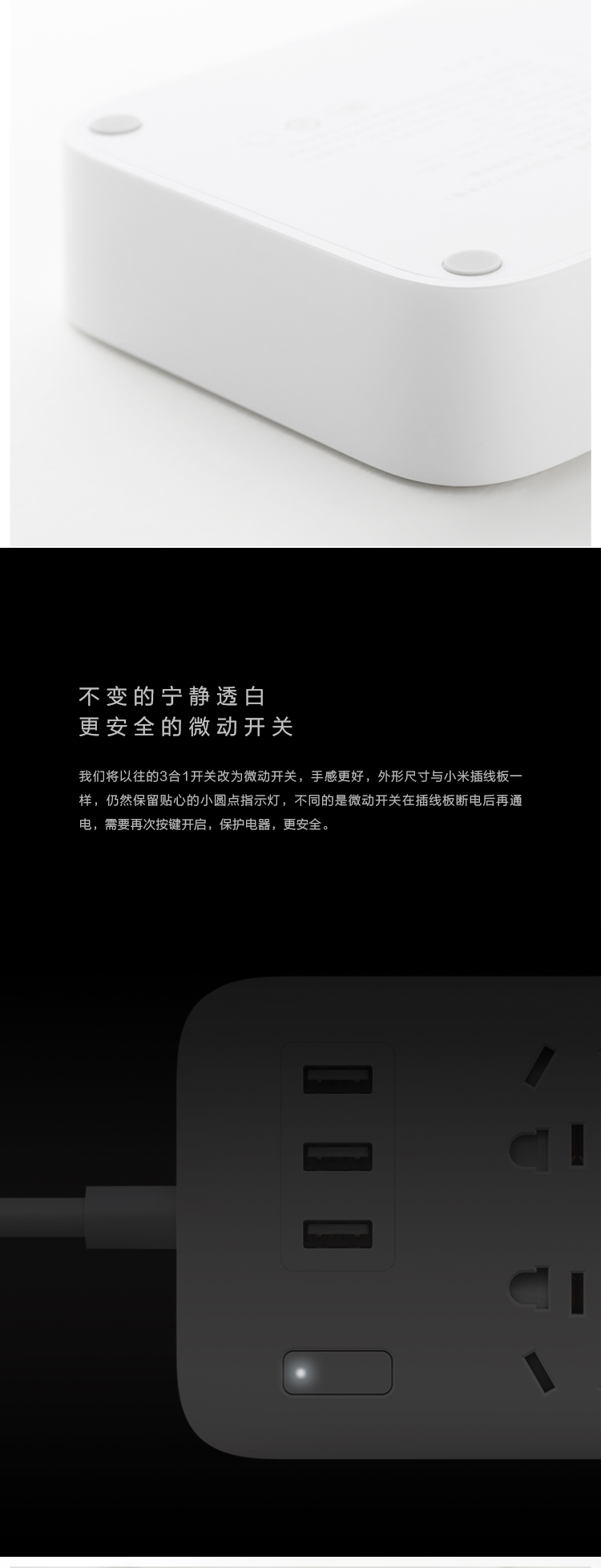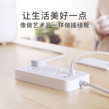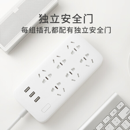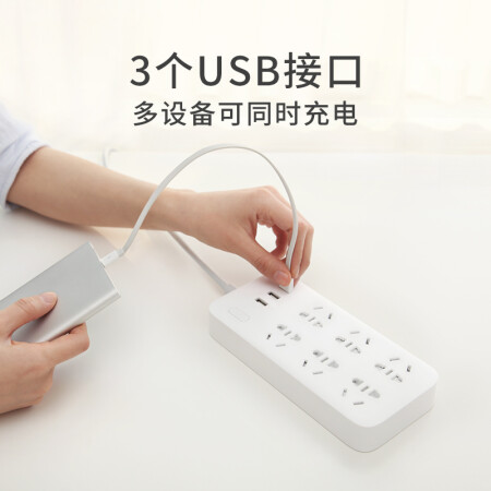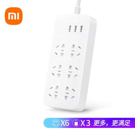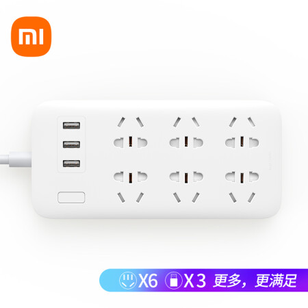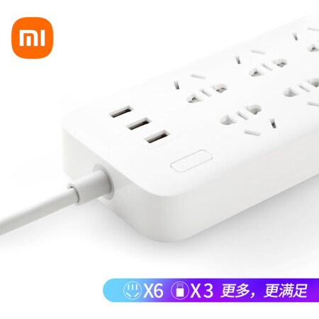 小米(MI)米家6孔位插线板/USB插座/插排/排插/拖线板/插板/接线板 3USB接口 全长1.8米