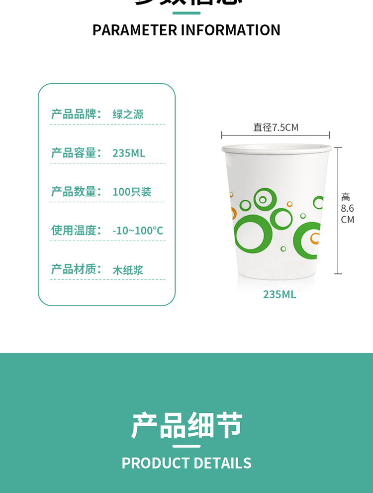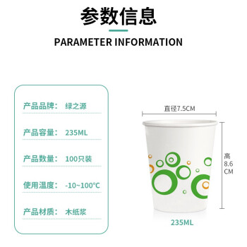 绿之源 一次性纸杯 印花235ml加厚水杯防烫100只LQ9968