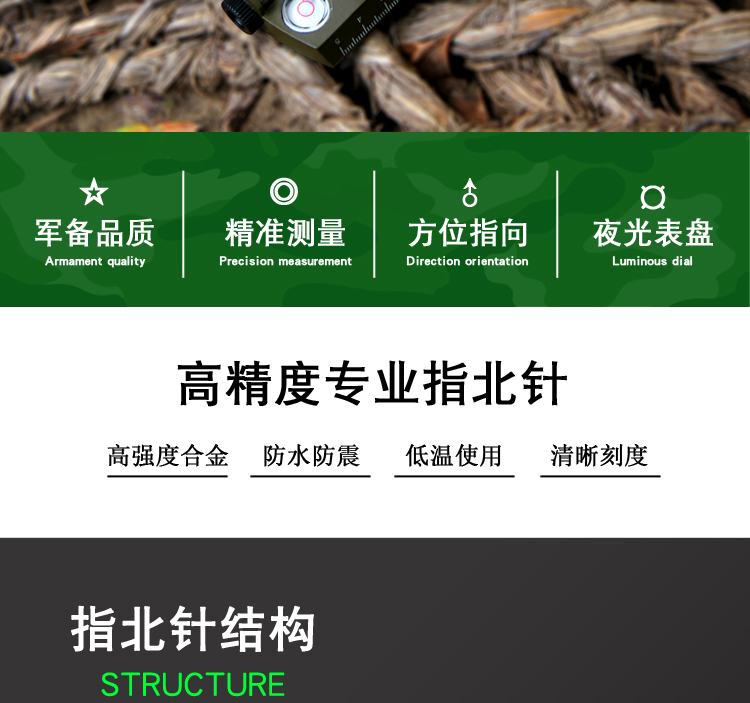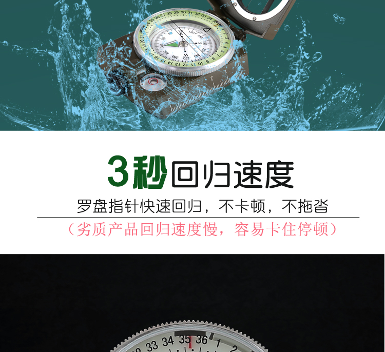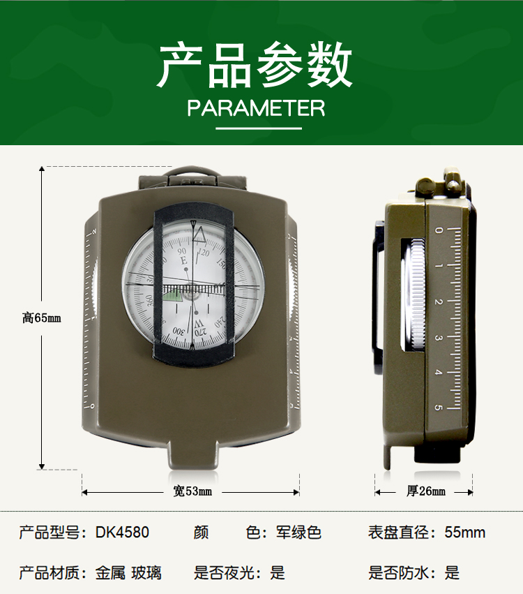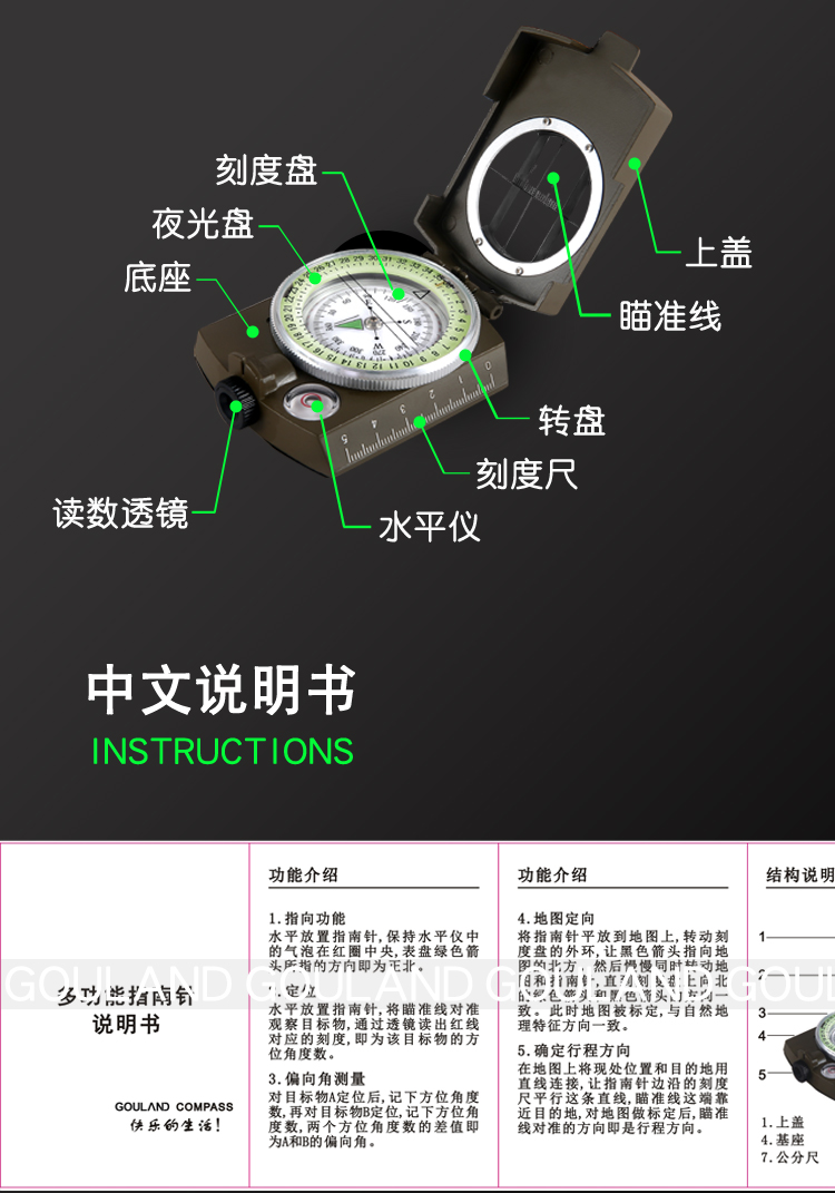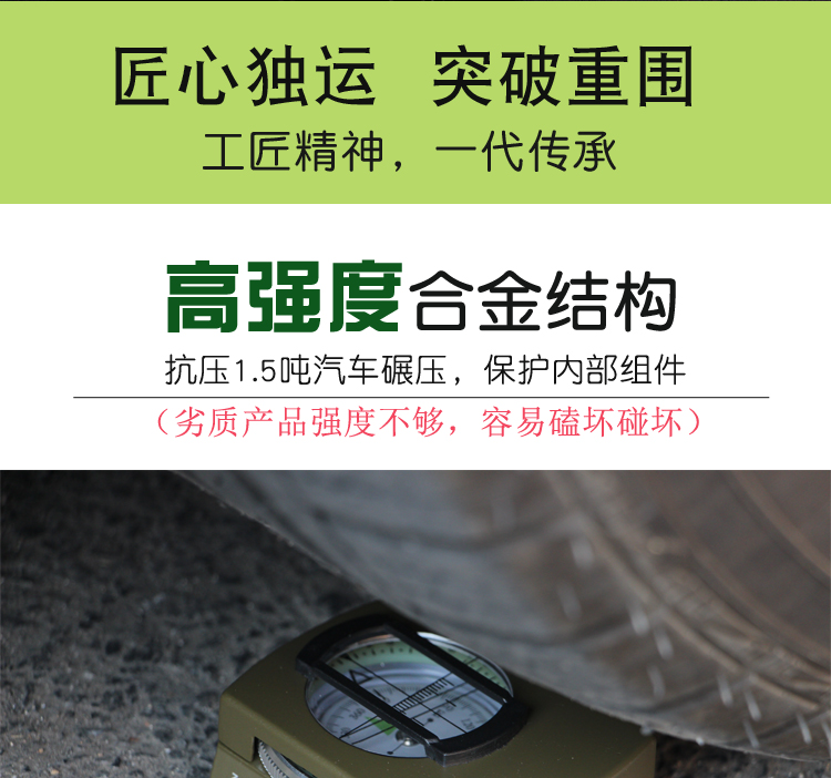 戈顿 GEDUN 指南针 美式多功能金属地质罗盘指北针野外旅游探险野营户外工具 带夜光圈