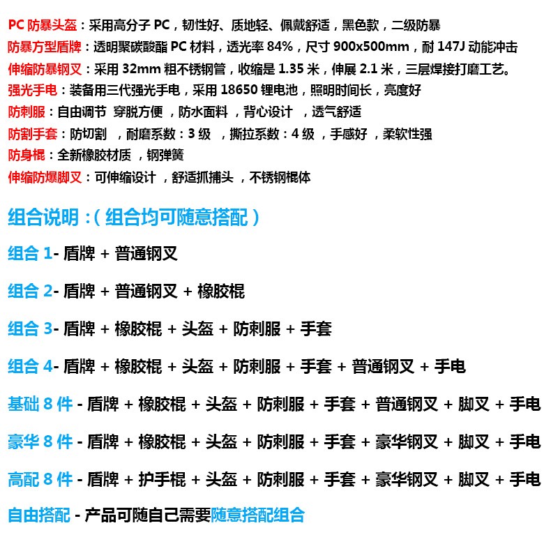学校幼儿园安保器材八件套防暴钢叉校园安保盾牌物业保安装备器材 安保7件套