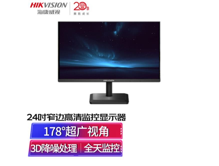 海康威视HIKVISION 22英寸1080P窄边框低功耗显示器D5022FQ-NA多接口全天候监控器台式机电脑显示屏